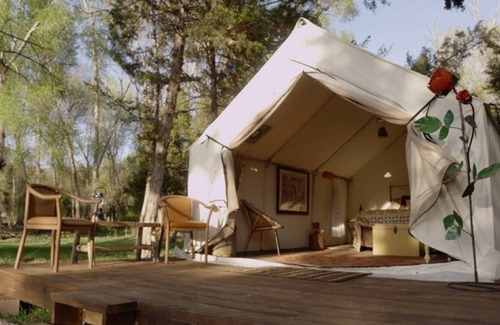 Enjoy the lovely setting of this romantic spot on Magpie Creek at the Norwegian Wood Ranch. Need a break? A girls getaway? A romantic weekend? Love the outdoors but don't want the expense of buying your own gear? It's time to getaway and spend time enjoying the outdoors instead of spending it setting up camp! Pure and simple, our plush linens, comfortable beds, and huge canvas wall tents are for happy campers. This isn't roughing it; you and 4 guest units share a private "outdoor" bathroom with a potty & shower (with instant hot water!). During your stay, be sure to get in a round of golf on our very own unique 9 hole par 3 course -- details available in the bar or on the mailbox next to the front door. And speaking of bar, be sure to join us for a drink or make reservations for dinner Thursday through Saturday at our fabulous fine-casual Highlander Bar and Grill. Enjoy a stroll around the ranch along Magpie Creek to see our Highlander cows, chickens, and the famous "Bacon" the pig.