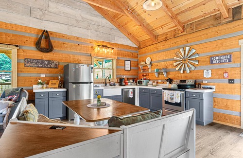 Nestled on the hillside of one of our gorgeous horse pastures, this quaint and cozy getaway is the perfect place to relax and take in the beauty of the surrounding Great Smoky Mountains. When you first pull up to your private gated oasis, you are greeted by our friendly horses and farm animals. Experience nature's serenity but only 12 miles from Dollywood. (We do take a $300 security deposit hold on this property. It is released after check out. )