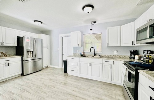 Welcome to your Lakeland, Florida vacation rental! This spacious 3-bedroom home is perfect for families, groups, or long-term guests. Enjoy a full kitchen, fast WiFi, and a fun game room with pool table & foosball. Relax in the private backyard with fire pit, seating, and pet-friendly comfort.