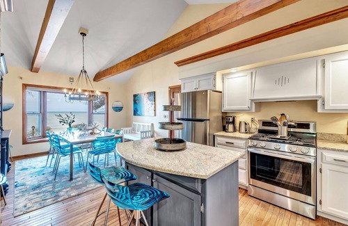 BBQ on the Weber gas grill then enjoy your meal either at the outdoor fire pit table, screened porch, or the beautiful dining room table. All with great views spanning Lake Michigan!