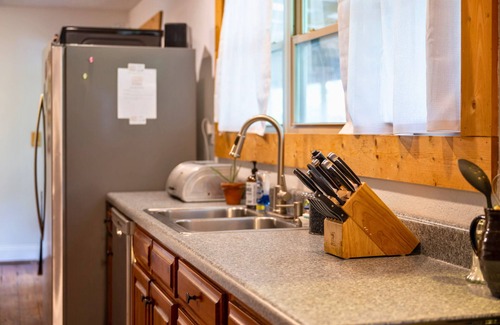Rustic and spacious, the kitchen is fully equipped with top-of-the-line appliances. Whether you're preparing a quick breakfast or a hearty dinner, this well-appointed kitchen has everything you need.