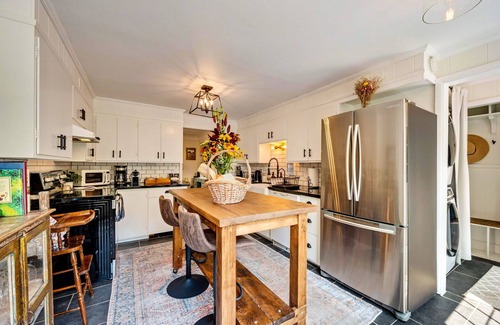 You will feel at home in the fully equipped kitchen with granite countertops, farmhouse sink, stainless steel appliances, and handcrafted island made with reclaimed wood. Relax and gather with friends and family in the open concept living room and dining room with original built-in leaded glass china cabinet, exposed brick chimney, and one-of-a-kind antique furniture. Rainy day or not, there are plenty of things to do indoors. Stream your favorite shows and sports on the Samsung Smart TV, make a puzzle, or cozy up in the window seat with a good book. Grab a deck of cards or board games like The Game of Life, Clue, Sequence, Monopoly, and more. There is also a gorgeous bathtub downstairs to relax and unwind, or a traditional shower in the upper bath with lots of natural light. Traveling with a baby or young child? You can leave the bulky gear at home as we're equipped with a crib, high chair, changing table, toys, books, and more.