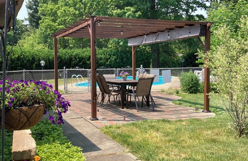 In warm months enjoy the three seasons room that leads to the pergola in the backyard and in-ground pool! The pool is open Memorial Day through Labor Day. Pool is available to renters staying in the house only.