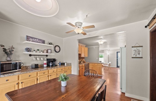 Escape to The Cottonwood Orchard, a family-friendly home on a private, peaceful acre just outside of city limits. Relax in two living rooms, enjoy the covered deck, and savor seasonally fresh fruit from the orchard. Spacious, comfortable, and air conditioned! It’s perfect for families or groups exploring La Grande.