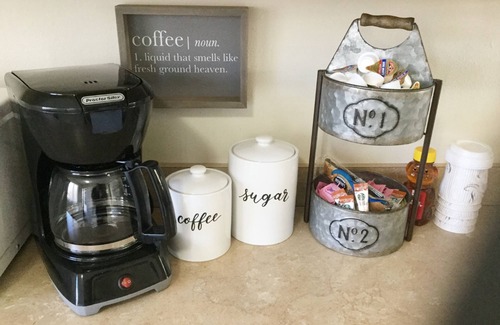 New modern appliances such as, refrigerator, stove, oven, microwave, dishwasher and coffee maker.
