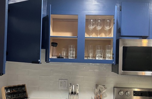 Our kitchen is fully stocked with pots, pans, Instapot, Ninja food processor, cooking utensils and spices. We provides the essentials to get you started (towels, paper products, detergent, coffee, creamer, etc.). If you'll be with us for more than a few days, we are conveniently located near shopping where you can resupply.