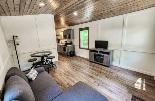Cozy and quiet, this tiny house cabin will prove to be your new favorite getaway! This cabin proves to be the perfect outdoor retreat you are looking for with all the amenities you need. Our modern tiny house cabins are the perfect place to relax, though adventure can be found just around the corner. Our 670+ acre property sits right on Lake Guntersville. Guests can access the waterfront by use of our private roads. The cabins are tucked into the woods, not directly situated on the water. Boat parking with battery hook-ups are available. Full size kitchen, stocked with basic cookware to make the perfect vacation meals from the comfort of your cabin. We ask that you wash and replace any items used during your stay. The cabin is supplied with bedding and bath linens to accommodate four. If you would prefer not to reuse bath linens, you can pack your own or request more at an additional fee. All rates include 4 guests and 2 vehicles.