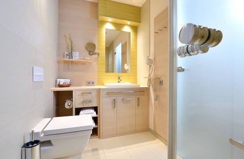 The family suite has 2 bedrooms, each with a double bed and single duvets. The comfortable living room has a seating area with a television, desk, minibar, Nespresso machine and a kettle. During your stay, you can use the safe free of charge. The bathroom has a shower, washbasin, hairdryer and toilet.