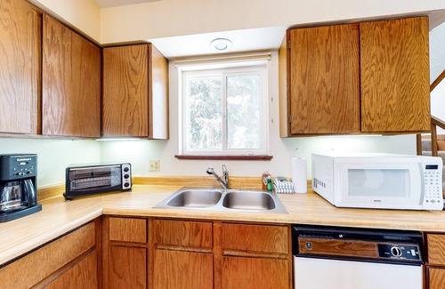 Inside, this gem has all of the rustic touches of a traditional cabin including a wood-burning fireplace, natural wood accents, and expansive windows looking out to lush greenery right outside. Yet, you won't have to sacrifice any comforts of home with free WiFi, multiple TVs, and a private washer and dryer ready to keep gear fresh during your stay. Cozy up in the living room and reminisce about the day over a mug of hot cocoa as the chef of the group hops into the full kitchen to whip up tasty meals on all of the major appliances. And, when it is time to hit the hay, bedrooms await on the lower floor and a loft is available for extra sleeping space!