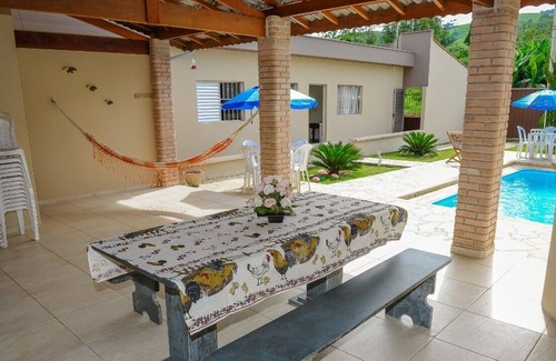 Farm for weekends and season house with accommodation for 10 people, 2 bedrooms and 2 bathrooms, living room with TV, WiFi, pool with waterfall and solar heating Hammock, Swing, Barbecue, Wood oven, Full kitchen with all utensils, Mini Field, covered garage for two vehicles and more parking for several cars, close trade. bakery butcher, market, church is 10 minutes from the center of Socorro, access by asphalt, well located and with several neighbors local resident, family atmosphere ...