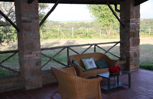 "Oliveto Mola" is a rustic farmhouse in tuff in the green quiet of a centuries-old olive grove near the center of Cerveteri. View of the valley and the sea. Living room with fireplace, kitchen, bathroom and two bedrooms, a double and a triple.