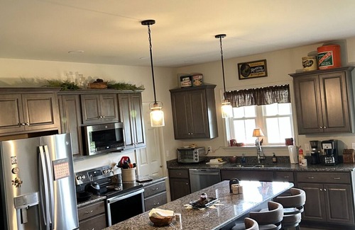 New ranch style home w/finished game room in basement. two bedrooms W/Q sized bed and tv. Free wifi,spacious kitchen/dining/living area w/ lg breakfast bar. washer/dryer included. Huge back deck w/beautiful sunset view overlooking the country side and dairy farm. 20 min. from lots of amish attractions and shopping outlets dutch wonderland strasburg railroad . Millersville, F & M , Stevens trade colleges.Walking, biking trail just a minute away . driveway..low traffic area.