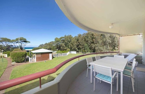 First-floor Fathoms apartment with ocean views. Resort pool & tennis. Walk to Mollymook Beach & Golf Club. Modern amenities included.