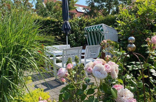 The apartment has its own small covered terrace with beach chair and chairs to the east / south, d. H. sunny and sheltered from early morning until afternoon.