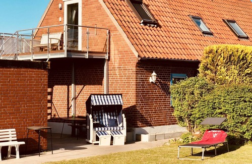 Fehmarn - beach at 500m, modern apartment, enclosed Garden, balcony, sea view, dog | Apartment in Fehmarn