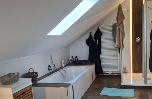 Nestled in Geestland, this 4-bedroom, 2-bathroom vacation home brings it all within your reach. Fans of nature and the outdoors will love being 32 minutes by car from Weser and 27 minutes from Weser-Strandbad. Bederkesa Castle is an easy 12-minute walk away or make quick work of the 3-minute drive to Bederkesa Railway Museum.