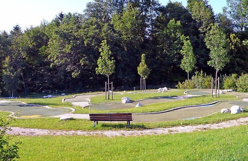 Resort "Ferienpark Vorauf". In the district of Vorauf 8 km from the centre of Siegsdorf, 8 km from the centre of Ruhpolding. For shared use: tennis (extra). In the complex: central heating system. Available: sledges (3). Central parking spaces. Supermarket 5 km, restaurant 5 km, café 5 km, bus stop "Heutau" 2.3 km, railway station "Siegsdorf" 5 km, outdoor swimming pool 5 km, indoor swimming pool 12 km. Mountain railway 27 km, ski lift 2.5 km, ski rental 5 km. Nearby attractions: Märchenpark Ruhpolding 8 km. Well-known ski regions can easily be reached: Hochfelln 14 km, Winkelmoosalm 27 km. Please note: car recommended. Loading and unloading of baggage is possible at the holiday house. The extensive holiday park consists of 300 wooden houses (partly A-frame houses and on a hillside).