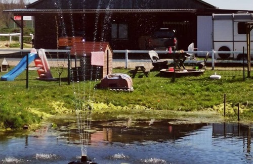 The wooden cottage on the horse farm invites you to a cozy holiday. The cottage is equipped with a bedroom with double bed, a living room with 2 separate beds on sofa beds and fireplace, a kitchenette and a bathroom with shower and toilet. Adjacent to the terrace are sunbathing and playing fields, show jumping rink, Pfedekoppel and the wonderful landscape of Mecklenburg Switzerland. From all the windows you can see horses, cows and our Nienhägner-Foxhound pack - with a little luck you can feed the ponies from the bedroom window with a carrot. In the yard you can use the playground and lawn, parking and barbecue areas.