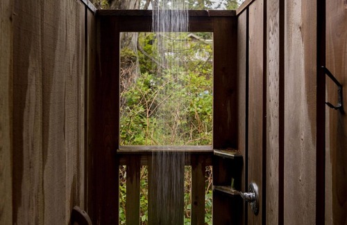✔️ An enclosed outdoor shower offers a private and peaceful experience, making you feel as though you’re showering among the trees