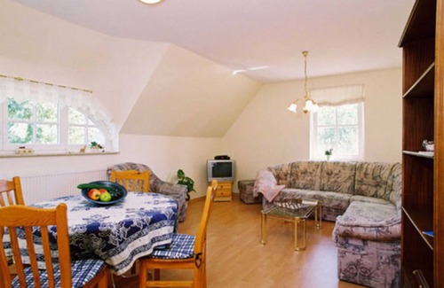 The apartments are located on the upper floors of a reconstructed thatched farmhouse, some with views of the large Jasmunder Bodden. The house is detached on the large property and has 2 terraces.
