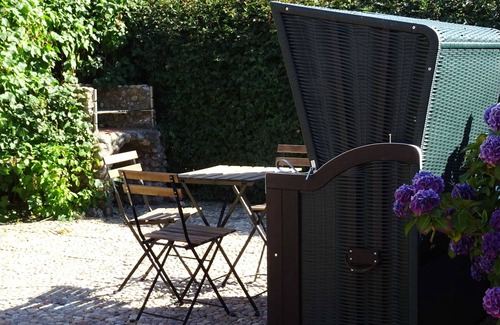 The apartment is about 45 square meters and suitable for 1-4 persons. It offers you: A living room with open kitchen A shower room / WC with window A bedroom with double bedAdditional sleeping area (two single beds) under the roof In the garden there is a communal sitting area with garden furniture and beach chair available. There is also a barbecue for you to use. An outdoor parking space and a covered bicycle parking