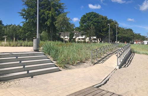 The beach of Wassersleben, located right on the doorstep, invites you to relax, swim, sunbathe and take picturesque walks. A parking space directly in front of the door can be booked for the holiday apartment, as can storage for bicycles. A bus stop and a supermarket are in the immediate vicinity, making the holiday apartment ideal for holidaymakers who want to combine beach fun with city trips or a trip to Denmark.