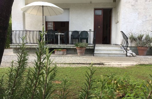 Traditional spacious villa which sleeps 4/5 persons. Two bedrooms, big furnished lawned garden and veranda for meals outside. Parking space on the premises. Situated in the green area of Poveromo, known for its many villas and private parks. Distance to the sea is 900m. The beaches are sandy and bigger than the ones in Marina di Massa. A free beach is at about 900m, same as various private beaches that offer discounts to our clients.