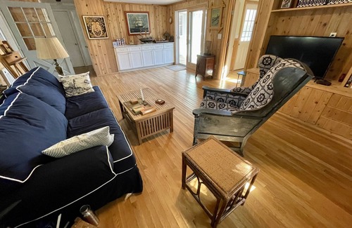 Lounge around the pool or walk one block to the ocean beach. Full-floor master BR suite w bathroom and work from home office space. Separate LRs on 1st & 2nd floors w streaming TV and high-speed wi-fi. Fire island family community, no cars. Walk/bike to stores, dockside restaurants and bars, playground, tennis courts, fishing pier. A/C in all bedrooms.