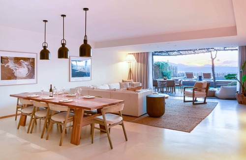 The Five Bedroom Residences at Six Senses Ibiza spa resort combine a traditional Finca aesthetic with all the modern comforts of our suites including priority in-room service and dining. Far reaching ocean views from the open plan living and dining spaces, master suite and the private pool lend themselves to infinite sunrise-to-sunset views and a natural breezy flow.