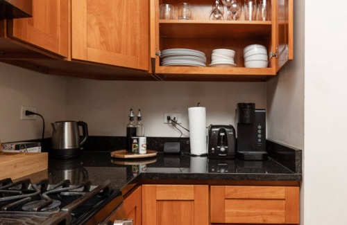 In-unit laundry, sunroom, smart TV with Airplay, Nest thermostat, self check-in, high-speed Wifi, and Keurig coffee maker