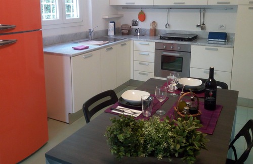 Apartment in villa of 70 sqm all on the ground floor, bright and nice, composed of bedroom, living room, large kitchen, full bathroom with shower. Pergola with table and chairs for breakfast and lunches. Direct access to a large garden of more than 1,000 square meters shared with the owners alone and equipped with a swimming pool (depth 1.30 m with access steps), sunbeds and deck chairs, relaxation area with armchair and sofa. The pool is open from mid-May to mid-September. You can access the laundry room equipped with a washing machine (for a fee) and an iron. Free outdoor parking.