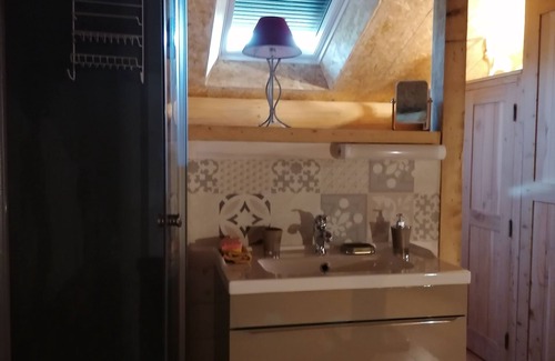 3 bedrooms with double bed (including a master bedroom with sink) and an extra bed for 2 people on mezzanine.