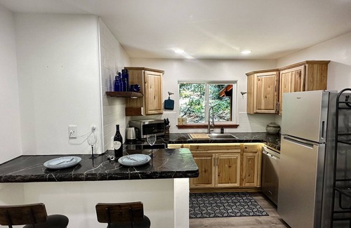 Kick back and relax in this calm, stylish updated space. Direct access to popular Hiking and Biking trails from the backyard. Located right between Historic Downtown Nevada City, and Lake recreation. Only a couple miles up to Scotts Flat lake for boating, swimming, kayaking, and fishing, and only a couple miles down to Nevada City and Grass Valley. Fully equipped for couples and family's to stay for days on end. Pet friendly with a mid-sized doggie door access to large completely fenced yard.