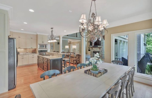 This beautiful home has something for everyone and plenty of room to spread out. Peaceful views of the lake from the screened porch are a great place to start and end your days. You will have the use of the private covered dock. The home is very spacious with the entire upper level for the kids to play ping pong, air hockey and other games. On the lower level of the home is another great space to unwind and watch sports or movies.