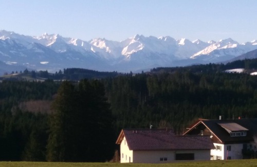 The house stands alone, about 950 m above sea level, on a sunny southern slope with a breathtaking panoramic view of the Allgäu Alps and beyond.