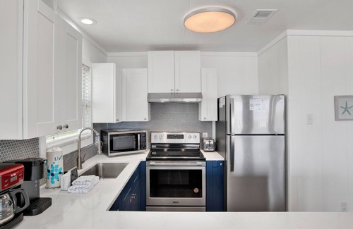 Inside, an open layout awash in calming colors and beachy themes contains a spectacular master suite with a queen bed and a private full bath. This home also has the benefit of being pet-friendly, so even your furry and four-legged family members can come along on the tropical vacation of a lifetime