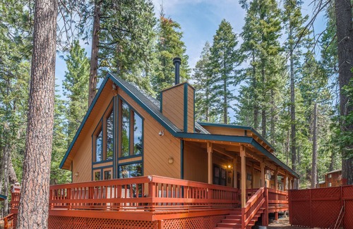 This classic chalet cabin has all of the comforts of home with the bonus of mountain serenity, on a level lot in the quiet subdivision of Big Trees Village in Dorrington! With 1632 square feet, 3 bedrooms, 2 bathrooms plus a loft, there's space for the whole family to spread out, with a deck off of the living room to enjoy the serenity of the Sierras. A wood stove, plus central heating will keep you warm and toasty during those snowy winter nights! Smart TV in living room includes Xfinity cable as well as the ability to sign in to all of your favorite streaming services.