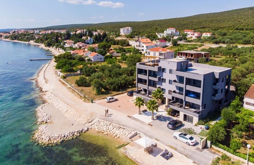 The modern apartment FRADAMA Blue A3 is located in the quiet place Sv. Petar na moru. The ideal location of this accommodation, right by the sea, gives you the opportunity during your vacation to enjoy a breathtaking sea view and a view of the island of Pašman, as well as the world-famous heart-shaped island of Galešnjak.