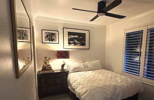 Features include a back courtyard with calming fish pond and water feature, double bed, tv snug, marble dining table and of course Chef's kitchen with double fridge/freezer, gas hob and oven, dishwasher and walk in pantry. There's a shower room and separate toilet and bedding, linen and towels are provided. You'll have access to the compound vege patch and to the small car port during your stay.