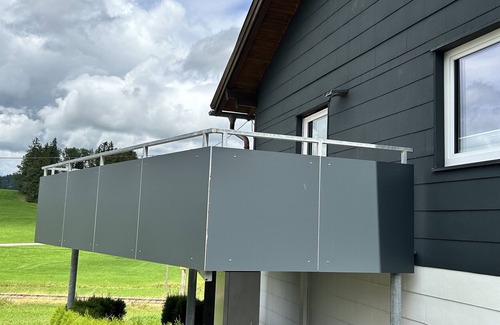 Located in Hopferau, the Frank Grieser holiday home with stepless interior offers guests a fantastic view. The 85 m² accommodation consists of a living room with a sofa bed for 2 people, a fully equipped kitchen, 1 bedroom with a double bed (180 x 200 cm) and 1 bathroom with a bathtub and barrier-free shower as well as a guest WC and thus offers space for 4 people. The apartment is also equipped with WLAN, two TV sets, a dishwasher, a washing machine and a tumble dryer. A baby cot and high chair can be provided on request. This holiday home offers a private outdoor area with covered terrace, balcony and electric barbecue.
