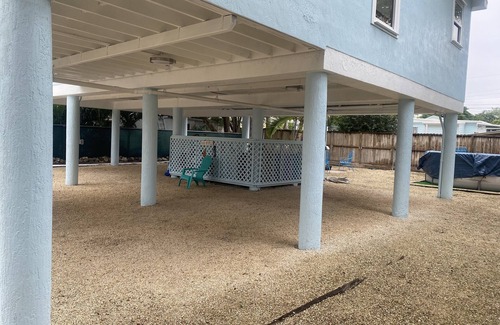 Our home has 3 bedrooms and 2 bathrooms (with a full sleeper sofia in the living room) with a cover patio to sit outside and enjoy hosting your guests like we do. The property also includes a round 16 ft above ground pool, fire pit area, barbecue, external two gas range system, cable tv, high speed internet (including WiFi), and mosquito misting system for a bite free outdoor experience. Since the home is located on the second floor the property provide easy parking for 6 vehicles and a full entrance for boat parking. This very quite neighbor allows for full disconnect and enjoyment of the real keys life. Our home is located approximately 75 ft from a private boat access ramp, with a tiki hut with tables.