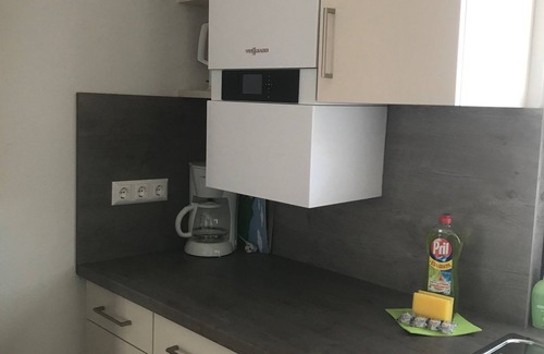 Kitchen (new 01/17): dishwasher, electric cooker with ceramic hob and Dunstesse, oven, refrigerator with freezer, kettle, microwave, coffee machines (Dolce Gusto capsule machine, filter coffee machine), teapot, toaster, egg cooker, BOSCH food processor, dishes and pots in large number and all common cooking utensils and more.