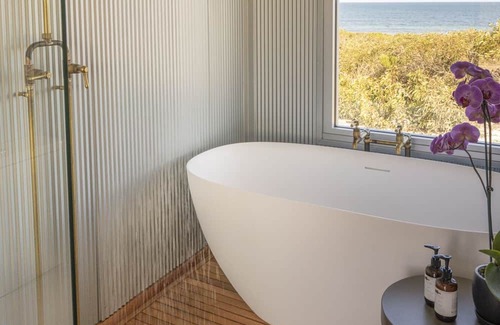 Guests will feel part of the landscape, gazing out at unrivalled views of the local flora, fauna and the Southern Ocean while relaxing in an interior made warm and comfortable with local timbers and contemporary fabrics. Outside, landscaping with local native vegetation cleverly frames long views of the beaches and the wild coast.