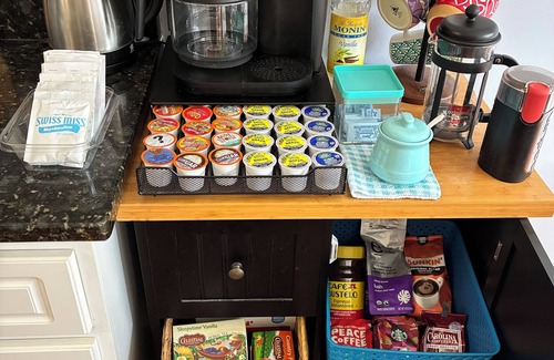 This gorgeous home features 2 bedrooms, 2 bathrooms, and an additional office / workout space with a futon. Guests can enjoy amenities like a fully-stocked kitchen and bathrooms, a game/reading room with a selection of games and a pool table, as well as a laundry room.