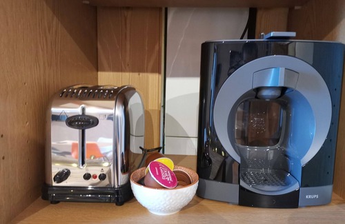 The apartment located on the 1st floor of the residence includes an equipped kitchen with built-in oven, microwave, dishwasher, coffee maker, dolce gusto, toaster, raclette machine, kettle, .. a dining area, a living room with sofa and television.