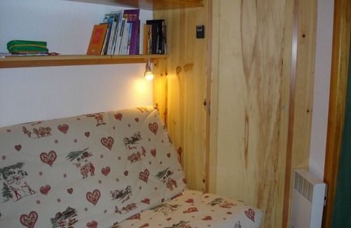 Equipment: Entrance: convertible 2 pl. 140 cm, TB bedding, high storage cupboards, dividing curtains and on entry door, electric convector, tiled floor, ceiling lamp and 2 spotlights. TBE