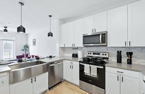 Cook up a gourmet meal or keep it casual—your modern kitchen has everything you need to make it memorable. The open layout, soaring 12ft ceilings, and premium appliances elevate every moment.
