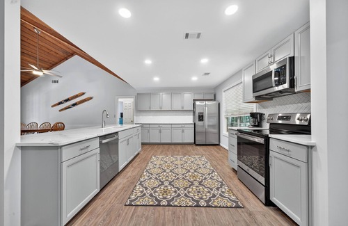 Make lasting memories at our lakefront retreat on Lake Oconee! Ideal for multiple families, this 4,800+ sq. ft. ranch-style home on a 1-acre lot features 4 bedrooms, a bunk room, 4 baths, 2 full kitchens, and a spacious finished basement. Sleeps up to 16 guests comfortably. Enjoy a canoe, 3 kayaks, and a paddleboard for lakeside fun. A perfect getaway with space, comfort, and activities for everyone!