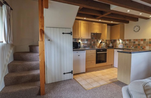 Garden Cottage consists of an open-plan living space with an electric oven, induction hob, microwave fridge/freezer, dishwasher, kettle, toaster Smart TV, radio, electric central heating and a woodburning stove. The bedroom consists of a king-size bed which is serviced by a bathroom. Outside there is an enclosed rear patio garden with furniture, onsite parking for one car and EV charging. Within 3 miles, you will find a shop, and within 2.4, a pub. One dog is allowed and please note that this is a non-smoking property. WiFi, fuel, power, bed linen and towels are all included in the price. Enjoy a romantic trip away at Garden Cottage. Note: A bed for a child can be added on request. Note: The freezer is located in the cupboard under the stairs. Note: Minimum 2 nights stand-alone guest suite available for flexibility - 90 GBP for 2 nights, 120 GBP for 3 nights, 150 GBP for 4, 5, 6 or 7 nights - please contact for availability.
