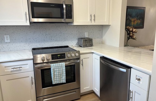 Welcome to your cozy, modern retreat in downtown Raleigh! Located in a secure, gated community, this beautifully renovated condo offers a perfect blend of comfort and style overlooking a private garden. Enjoy white marble countertops, new stainless steel appliances, and new luxury vinyl plank flooring throughout, all complemented by thoughtful, high-quality furnishings to make your stay as comfortable as possible.
